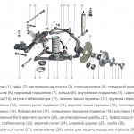 It is advisable to place soft pads on the jaws of the vice so as not to damage the shaft. Gently tap the housing with a hammer until the bearing comes out. The shaft, gears and other parts will easily follow. All removed elements are thoroughly washed with White Spirit using a brush. Finding a bearing of this particular type will be very problematic, since it is non-standard, so you should carefully wash it and save it. If you still need to remove it, use a special puller. We recommend not touching it unless absolutely necessary, since it functions quite well for a long time. Shake the rack out of the housing and wash it with White Spirit. Then dry it and lubricate it. Through the hole located in the body, carefully remove the plastic insert and unscrew the clamping nut. Often this action is very tight, know that there is a new one in the repair kit, if you are afraid of damaging this one. Replace the seal rings, first do not forget to shake out the stop. We carefully examine mustache, tips should not play, fingers should move with some effort, protective covers should not contain cracks or other defects. If you notice that any part (or several) has defects or incorrect operation is detected, be sure to rinse the part and dry it. did not help, we replace the part, but try to maintain the maximum length of the lever. To protect against the effects of corrosion, at this stage we recommend treating the threads with Movil. Next, we work on the hinges. Install new hinges, if there is something you don’t like about their operation or seems suspicious. Insert a new plastic bushing into the body, its protrusions must certainly be directed into the holes