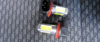 | Characteristics | Remember that options with increased light output have a shorter service life than regular lamps. Therefore, decide for yourself what is more important to you – lighting brightness or durability. As an option, you can consider LED elements for installation in fog lights in the Lada Kalina; they have a long service life with high brightness, but their cost is high |