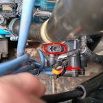 Well, now the most important thing. We install the bracket on the faceplate and put the brake disc on the hub. Place spacers at the connection points. This must be done at connection points. It happens that the size of the washers may differ, then you need to buy them for a specific car, in our case it is tuning a 14 model car. We tighten the faceplates and the connection of the brackets (I recommend doing this with a force of 3-4 N.M). We screw the hose to the caliper, install the pads, and you can close the tube sealing line. Now we seal the brake line. We check the line for leaks by pumping up the pressure with the pedal. If everything works as it should, then you can begin installing the HCD on the other side.