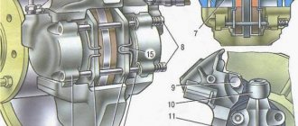 To adjust the position of the brake pads, press the brake pedal several times. We hold it down and then raise and lower the parking brake (when moving the lever, you must keep the parking brake release button on the lever depressed at all times so that the ratchet mechanism does not work). In this case, clicks will be heard in the brake mechanisms of the rear wheels from the operation of the mechanism for automatically adjusting the gaps between the pads and brake drums. We raise and lower the parking brake lever until the clicking in the brake mechanisms stops.