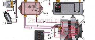 The regulator body is installed on the car body, the plug with the letter Ш is used to connect to the modernized brush assembly. The other output from the brushes is connected to the 3rd contact of the B-regulator. Block B is connected to the positive terminal of the battery via a relay, which is powered from the ignition switch.
