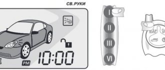 First of all, you need to remember that the entire set must be re-registered: at the beginning of the procedure, the memory of all key fobs previously recorded in the memory is erased. If a problem arose on the road, when you only have one key fob with you, upon returning home you should repeat the procedure, but with a complete set - otherwise, if the main key fob breaks, you will have to open the car with an emergency disarming of the system. On all registered key fobs with an LCD screen, you need to turn off the “Hands Free” function (by holding down button 1 for two seconds), and the system will be disarmed.