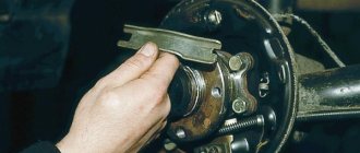 Этот вид ремонта несложен, выполняется сравнительно быстро и не требует применения специального оборудования. Отпустите ручной тормоз и проверьте что задние колеса свободно вращаются.