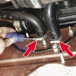 - Отсоедините пару патрубков от радиатора отопления для салона автомобиля. Хомуты ослабьте, что позволит снять элементы.
