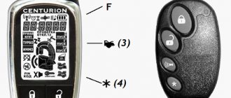 Непродолжительное нажатие клавиши 3 включает на 10 секунд подсветку экрана брелока. Кнопка 4 обеспечивает включение проверки состояния системы. Одновременное активирование клавиш 3 и 4 на 2 секунды включит или выключит режим блокировки кнопок управления коммуникатора.